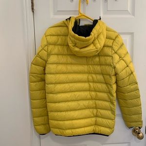700 Fill down jacket, small box shape, packable yellow jacket. Water repellent.