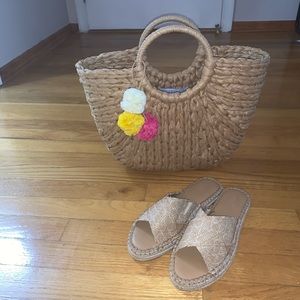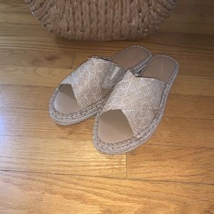 These sandals are a straw material. They have a espadrille flatform detail. They have never been worn. I ordered the wrong size.
