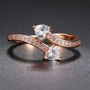 18K Gold Plated Heart Double Stone Ring Size 7