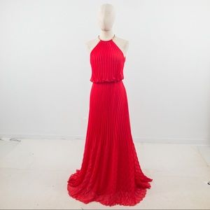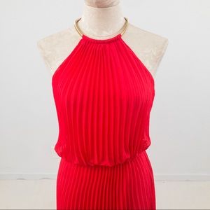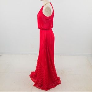Guess S Studio 54 Pleated Maxi Dress Red Coral
