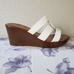 Italian Shoe Makers Wedge Sandals White Sz 8.5M