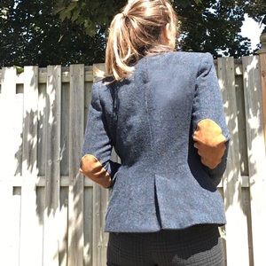 This made in Spain Blazer from Zara is made from Lambswool, with suede patches on the elbows. I upcycled it by adding a red and blue Hand Embroidered rose patch on the front pocket. It is navy with a faint red pinstripe. The interior is a fuchsia pink, silky material.