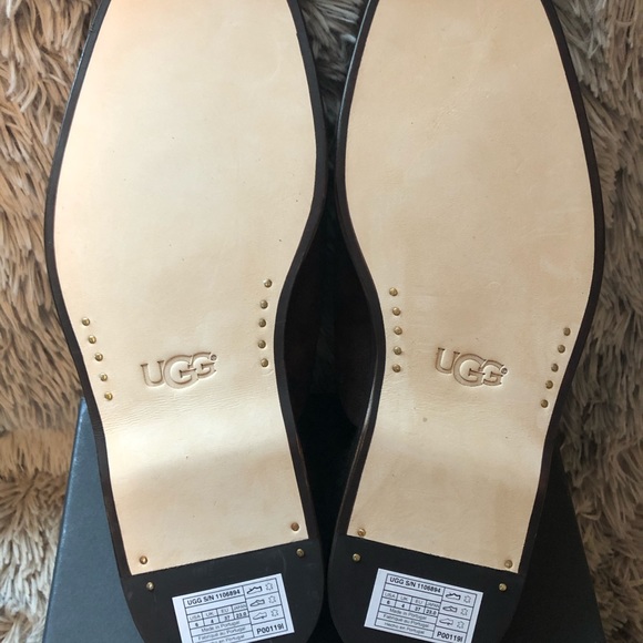 “A soft, comfortable and remarkably durable slipper from UGG is made from rich suede and features a cozy genuine-shearling and UGGpureTM lining for warmth.”