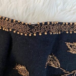 Vintage black lambs wool cardigan with ornate beading throughout. It is missing some beads and has some loose beading which is typical for the age of this item.
