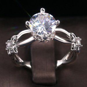NEW 925 Silver Solitaire Diamond Flower Ring
