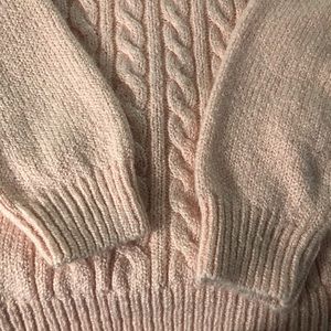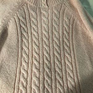Sweater with cables in front. Plain back and 3 pearl buttons on collar. Gently worn , great condition.