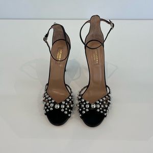 AQUAZZURA BLACK STUDDED SANDALS SIZE 8