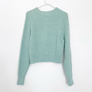 Free People Too Good Sweater Womens Size Large Opaline Green Mock Neck Pullover. New with tags. Long raglan sleeves. Pullover style.