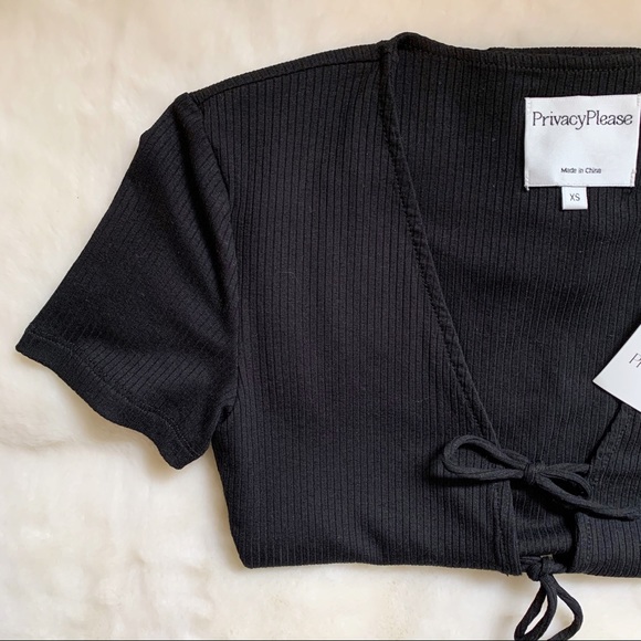 Features: revolve, privacy please, short sleeves, rib knit, tie up.