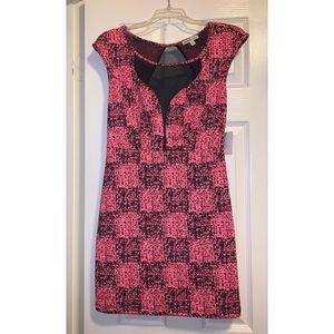 Form fitting pink neon mini bodycon dress with black mesh paneling on the front and back. Never worn.