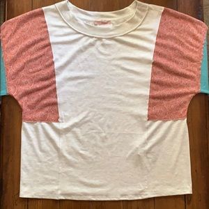 Awesome oatmeal background with a very subtle light grey heathering. The close ups of the detailing in the sleeve is true to the actual color! Such a fun top!