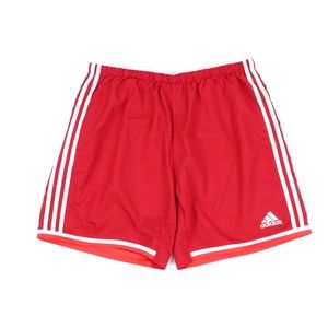 Vintage Adidas Mens XL Spell Out Stitched Striped Running Soccer Shorts Red