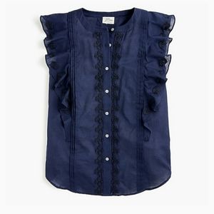 NWT J. Crew Blue Embroidered No Collar Sleeveless Ruffle Top Size 0
