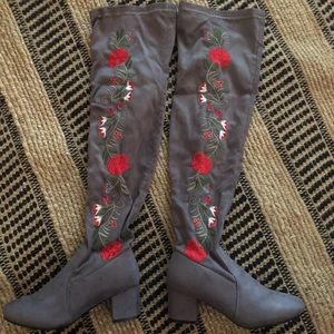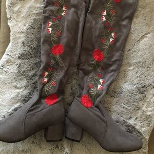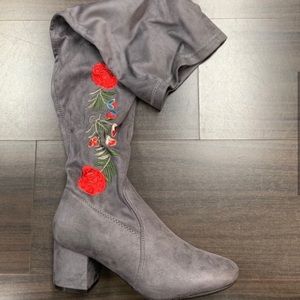 NWT Grey Floral Embroidered Classy & Trendy Boots