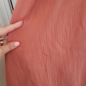 Coral/Peach Midi Dress with sleeves. Size L with elastic drawstring waist for flexible sizing! Worn once, in excellent condition. Beautiful subtle textured material, flowy and breezy. Modest and versatile.