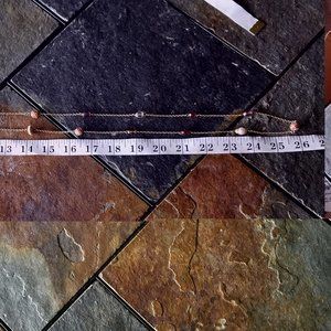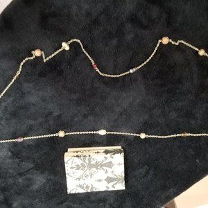 This on does not offer any hook and clasp, or any closure. Instead one endless necklace, of sufficient length, that it could offer overlap hanging around neck. Simple, but eye catching piece of jewelry. EUC. Beautiful box included for storage