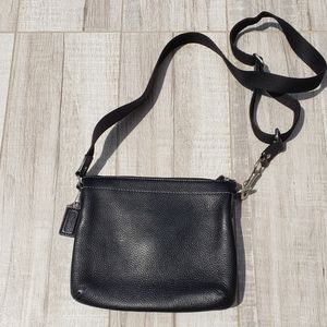 Sleek Coach cross body bag with pebbled black genuine leather. Only worn twice and in pristine condition. Great for everyday, vacations, and nights out on the town!