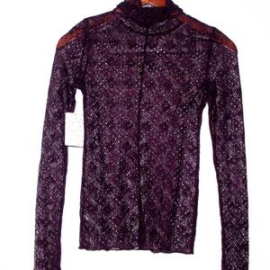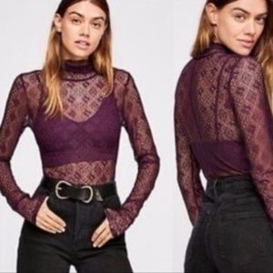 NWT Free People SHEER LACE TURTLENECK TOP