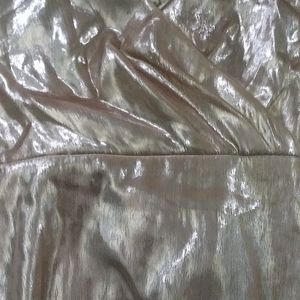 NWT. Sexy and stylish dress. Reflect the light and take in the compliments wearing this shimmering metallic dress cut with an open back crisscrossed by the adjustable straps. - Surplice neck - Sleeveless - Adjustable straps - Hidden back-zip closure - Empire waist - Side slit - Partially lined - Imported