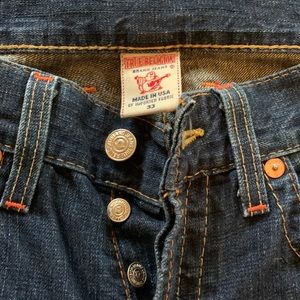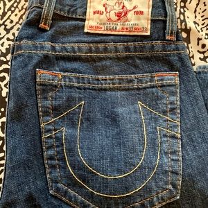 NWOT True Religion Authentic Logan Straight Leg Jeans size 33x34. Button fly!
