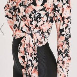 PRETTYLITTLETHING Pink Floral Print Wrap Front Tie