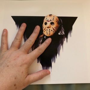 JASON VOORHEES PRINT.Prints made by me @ a printing shop when I’m not bedridden.Originals aren’t for sale.PRINT is letter sized,on premium,acid-free paper,using high quality ink.The paper is lightly glossy brochure paper w/a weight like card stock.ARTWORK is only sold as a PRINT.I’m a disabled single mom & I’m bedridden most of the time w/a disease called TRIGEMINAL NEURALGIA.This print is supposed to look blurry(in parts)I made it that way intentionally & I’m advising you here before you buy.