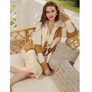 🎥 Colorblock Long V-Neck Cardigan with Pockets