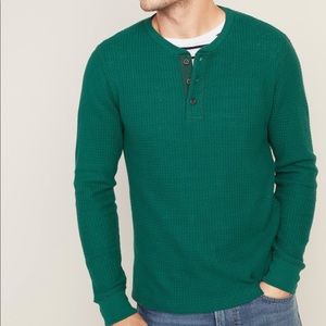 New Men’s Old Navy Soft, long sleeve hanley/ thermal shirt. Green color, soft and cozy. 54% cotton,44% polyester, 2% spandex.