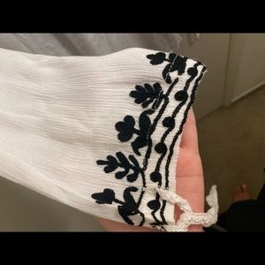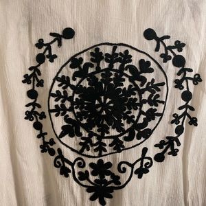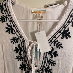 White swimsuit cover up with black detailing. Never been worn and tags still on. Perfect to throw on over a bathing suit and flip flops! NOT Anthropologie