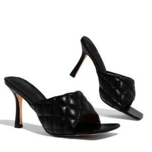 !! NEW !! SQUARE TOE Quilted Mules in Black