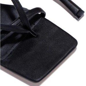 !!NEW!! Square Toe Ankle Wrap Thong Heels - Black