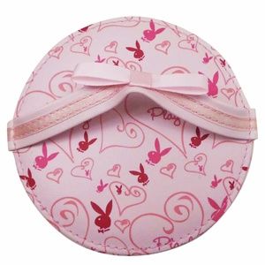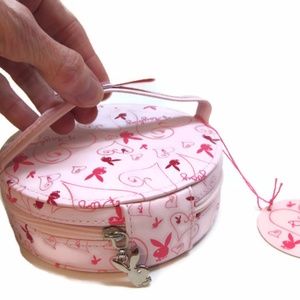 Pink Zippered Playboy Jewelry Box measures nearly 5” diameter X 1.75” tall