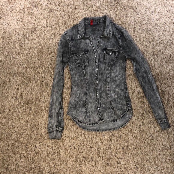 Perfect condition size 2 grey acid washed button down shirt. Buttons are snap closure