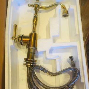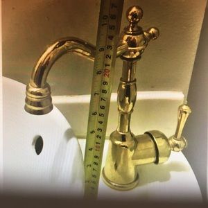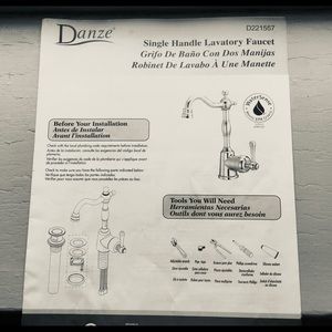 Will make your bathroom suddenly opulent! High quality, heavy solid brass, ceramic disc cartridge so drip-free. Swivels 360o. Instruction booklet n all parts included. Too short for my high vessel sink, so had to take it out — hardly used. Shiny brass no longer available, but other lesser finishes are $504 and up on Danze website. Their lifetime guarantee might apply.