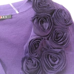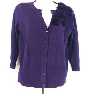 Cyrus Plum Button-Up Cropped Cardigan Roses Medium
