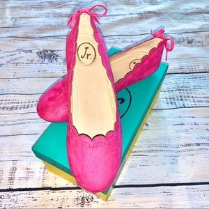 Jack Rogers “Miss Lucie” pink ballet flats. IMPERFECTIONS ON RIGHT SHOE - See flaws in photos—will be barely noticeable when wearing. These have never been worn and are in the box but they are flawed as described and shown.
