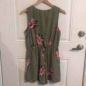 A New Day Moss green short romper with leaf prints