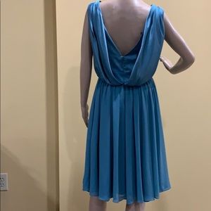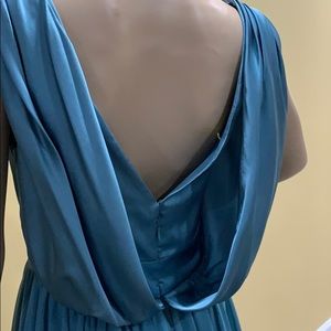 Beautiful draping, light comfortable fabric, deep v back. Lined and recently dry cleaning. 17.5 inches pit to pit/39 inches long. Stored in a smoke free environment pet free environment.