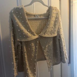 Lovely Worth 100% cotton soft butter colored sweater w/ hand sewn shells 3/4 length sleeves-size M- never worn - absolutely no flaws!