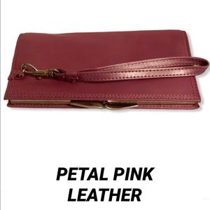 LEATHER PETAL PINK WRISTLET CLUTCH BY ROLFS