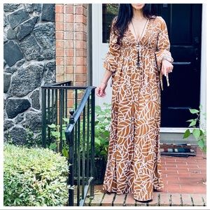 ✨LAST✨BOHO GYPSY CHIC LEAF PRINT WOVEN MAXI DRESS