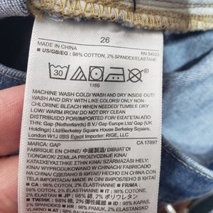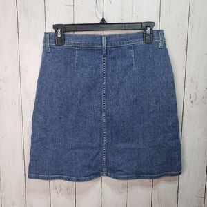 Gap Button Front Blue Denim Cotton Stretch Jean Skirt Size 26. Condition is Pre-owned. Length 18½", waist 15" side to side. Offers welcome
