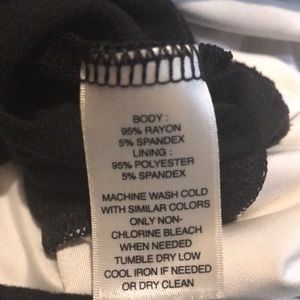 It’s in great used condition. There’s no nicks and no stains. It is a little bit stretchy at the shoulders but not too much. The neckline is a little bit big. It’s short sleeve. The bottom has stripes with decorative buttons. This works great as a work blouse or to nicer events. It’s a really nice blouse.