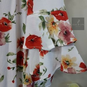 Lightweight, flirty, flowy and cute! This top can be paired with cut off denim shorts, capris, bell bottoms, skinny jeans with ankle boots, a skirt...you name it, it will work! Super adorable! Can be dressed up for work or dressed down for a casual affair. Fun sleeves and flattering! Doesn't hug the body! Wear a colored lace bralette underneath for added style or keep the shoulders bare with a strapless bra underneath.