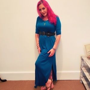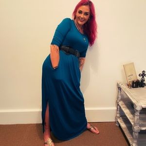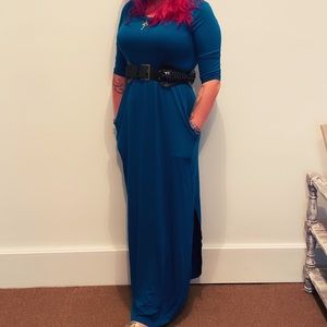 TEAL BLUE 3/4 sleeve maxi dress with pockets M L XL