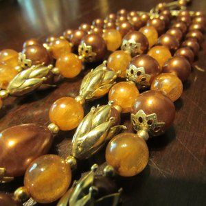 🧡 Gorgeous Vintage Copper-Gold Tulip Beaded Necklace