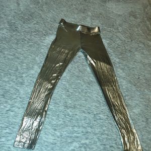 Shiny silver spandex style leggings small