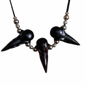 🖤 Brand new ! Handmade 🖤resin raven skull choker necklace . Two black ravens and one dark red raven with some glitters in the center . Comes on adjustable black suede cord ( wear it short or long ) 🖤 Any questions let us know ! Bird skull , Orin’s crow , Viking , Goth, Gothic,Punk,Moon,Moon-child,Sparkling,Boho, Chic,Unicorn,Glitter,Witch,RockStar,GlamRock,Vampire, iridescent , Alternative,Unique,Galaxy,Psychedelic, choker , necklace, rave , festival , edc , cyber , stylish , rocker .