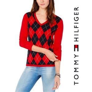 Tommy Hilfiger Women’s Red/Navy Argyle Sweater, M