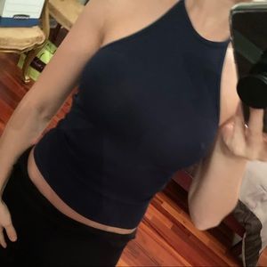 ASOS Ribbed Halter Neck Top Navy Blue 00P